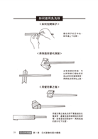 宴會上使用的筷子種類/茶懷石料理使用的公筷/正確的拿筷方式/錯誤的拿筷方式/如何使用筷架與筷袋/如何拉開免洗筷/如何拿取餐桌上的筷子/使用筷子的禁忌