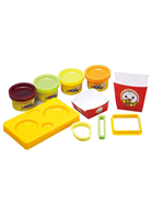 4色黏土(綠色、棕色、橘色、黃色)與一組漢堡模具
