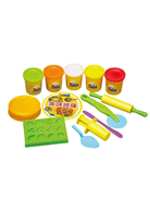 5色黏土(綠色、紅色、橘色、白色、黃色)、8款黏土工具(1個食物模具、1個披薩模具、1個滾輪、1個擠壓器、1把鏟子、1把工具刀、1把圓形滾刀、1張披薩紙墊)
