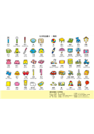 2.圖卡正面是各種生活用品圖案,反面是正面生活用品的中文名稱、英文名稱及注音,兼具認知與語言學習的功能。