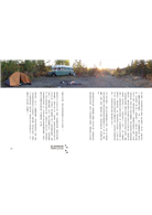 ──內部布滿曾到訪過的人們留下的簽名刻痕,小櫃子裡儲存了些緊急食物與生活物品,巴士中間有個大鐵筒改造而成的火爐,雖然煙囪滿是鐵鏽與補釘,但看上去仍能良好運作。兩張鐵製的簡單床鋪,陳舊床墊上鋪著已然灰黑破損的床單,長期使用後壓出的人型凹痕顯而易見,這張床,就是他迎來生命結束的終焉之地嗎?研究著牆上數不清的名字與留言,究竟有多少人曾經來過此地?坐在床上,彈簧發出嘎吱的聲音,