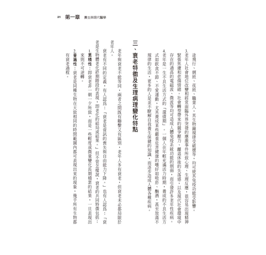健康老年人的標準/養生與亞健康狀態/衰老特徵及生理病理變化特點/衰老機制學說/養生與抗衰老研究/養生與抗衰老研究新展望