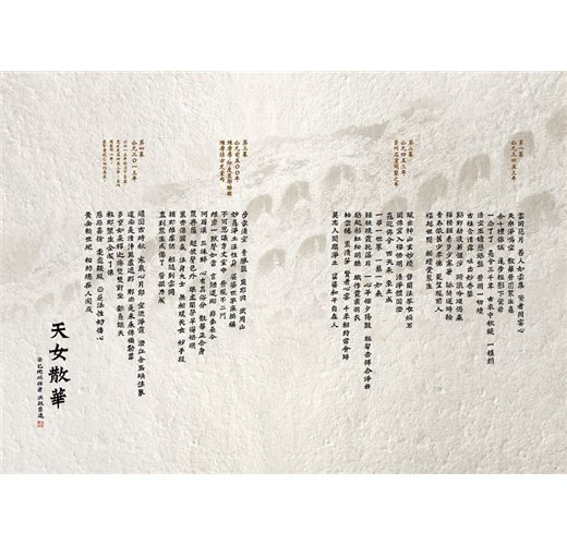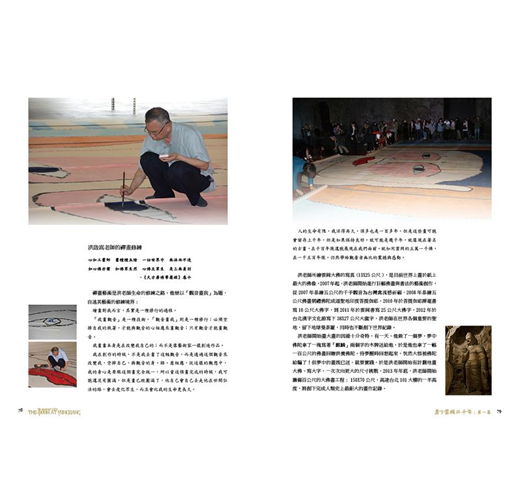 歷年來,我在印度菩提伽耶、中國雲岡石窟、尼泊爾雪山前、不丹等地,持續藝術創作,以覺性行動藝術,在世界重要的聖地,留下地球曼荼羅。2008年,我在印度石窟之母—阿旃塔石窟持蓮花手觀音洞前,寫下3公尺X10公尺的心經前半卷,而後半卷則於2011年在雲岡圓滿,名為「阿旃塔˙雲岡心經」。它象徵了佛法從西天傳到東土,「印度佛˙中華禪」的傳承之路。