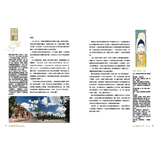 有幸在這歷史一刻停留,對於我們這些相信靈性與神性的人來說,吉兆早在二○一三年九月十八日就出現了。我們在北京雍和宮參觀的行程剛開始,首先看到一隻鷹在空中盤旋。接著,從飛機降落山西大同機場,一直到下榻旅館,沿途傾盆大雨。但在隔日清晨,也就是九月十九日,天氣卻忽地轉好,前往大同市華嚴寺拜訪之際,竟目睹一道圍繞著太陽的彩虹。從大同市區到雲岡石窟的路上,陽光普照伴隨著濛濛細雨,這正是不丹信仰中視為吉兆的「花雨」。這些令人難以置信的神蹟後來繼續出現,順利讓我們完成接下來上海、浙江省安吉縣和深圳的行程。