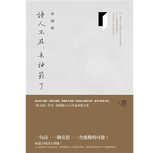 這本《詩人不在,去抽菸了》,是作者徐國能與詩、詩人的對話,是一場只屬於自己的人生長談。閱讀本書,讀者可能回到了童年,可能釀成一壺未來的酒;因為詩句,讀者窺見他者人生的一鱗半爪,懂得一些更複雜的情感與悸動,彷彿正有人聆聽著自己的愛與煩惱。