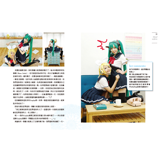 除了服裝、角色、作品介紹和Cosplay之外,也提到一些竅門和服裝製作TIP。