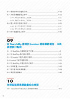 後面三章則針對引領建築景觀動畫風騷之Lumion軟體提出詳盡的解說。以三個範例場景由建模到動畫的製作做全過程示範。如此一來,從一開始的建模到最後的建築景觀渲染輸出,或製作成建築景觀動畫,整體建築設計體系得以完整學習,以使讀者能早日登上建築設計師的殿堂。