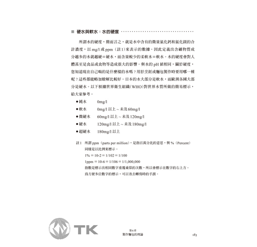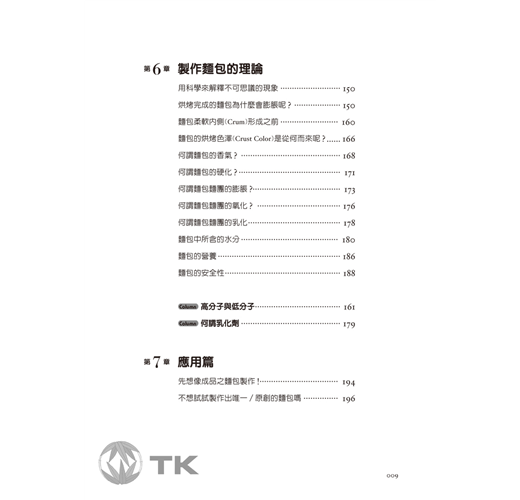 如何分辨高筋麵粉和低筋麵粉?即溶乾燥酵母可以溶化在水中嗎?為什麼麵團不易擀壓並且容易斷裂?「時時思考○○○○○為什麼?」能夠隨時抱持著疑問,在求知與製作上非常重要。思考這些事情並且以科學的角度瞭解其中原因,就是進步的關鍵!
