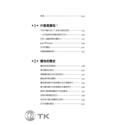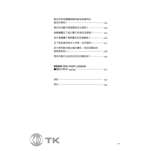 本書中,將帶領讀者們從麵包的歷史、材料、製作方法、步驟、進一步瞭解麵包的Q&A…等篇章,以詳細的圖文與插畫,解答所有關於麵包的為什麼。