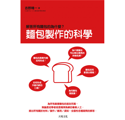 繼「用科學方式瞭解麵包的為什麼?」作者吉野精一大師2014最新著作!吉野大師說:『本書全面性的囊括了關於麵包的所有內容,因此無論是初學者或是精準熟練的專業人士,只要是對麵包抱持興趣與關心,都能夠輕易地閱讀。』