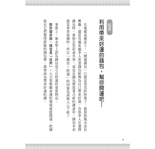 前言 利用帶來好運的錢包,幫你開運吧! 6