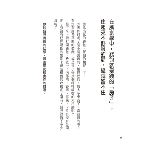 在風水學中,錢包就是錢的「房子」。住起來不舒服的話,錢就留不住 18