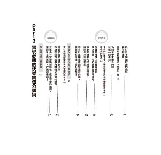 三年內一定要換新錢包,這是不變的鐵則。 舊錢包不要丟掉,收藏起來吧! 97