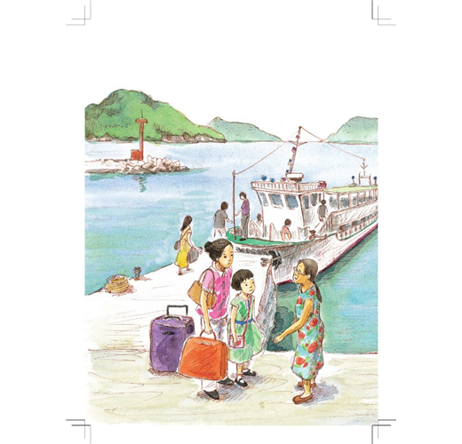 美珠打開車門跳出來,媽媽提著行李跟在後面。兩個人走到停車場對面的客船售票大廳。因為正是休假高峰期,售票大廳裡擠滿了人。