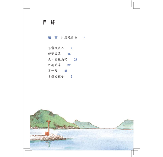 這本書裡的主人公也跟那個孩子差不多。因為媽媽的干涉,她覺得自己什麼都不能隨意做,所以寧願去無人島,那樣就可以想幹什麼就幹什麼了。你們也有過這樣的想法嗎?已經長成大人的我,偶爾還會有這樣的想法。隨自己的意願生活,那樣會幸福吧……果真如此嗎?