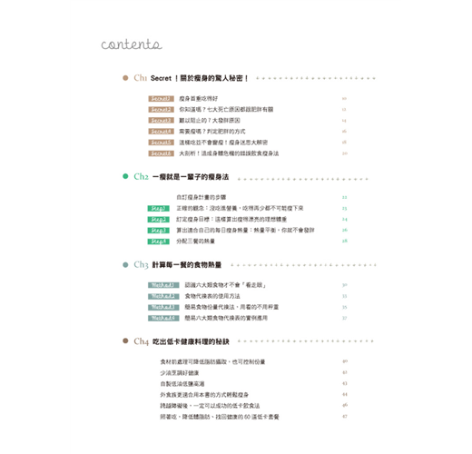 利用書中的瘦身熱量計算方式和烹調技巧,以及營養小提醒,絕對可以幫你做出色、香、味俱全的無負擔料理。