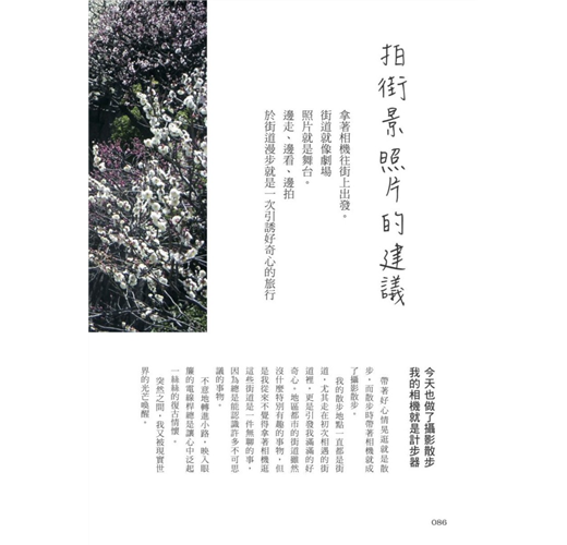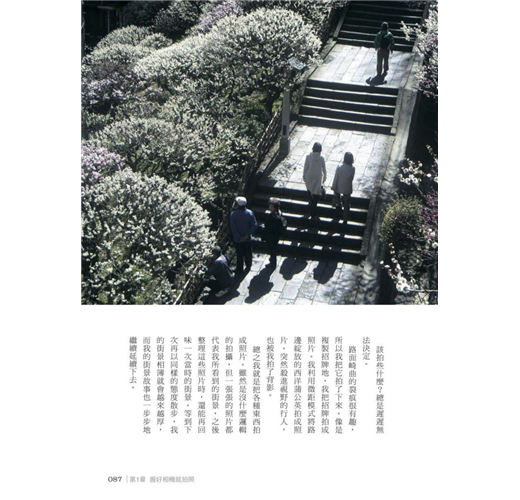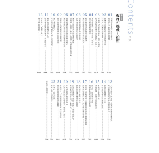書中將以作者自己實拍的照片為範例,並採用簡單易懂的解說與重點提示,讓大家瞭解如何對攝影更樂在其中,並為自己所拍出的照片,提升更多附加價值與自我意識。