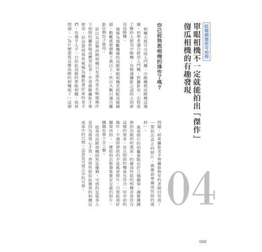 從這一刻起,我們不再教你學快門光圈,而是先傾聽自己內心的聲音、以輕鬆玩的態度來面對攝影這件事,讓你將周遭事物也拍得很有自我風格的味道。