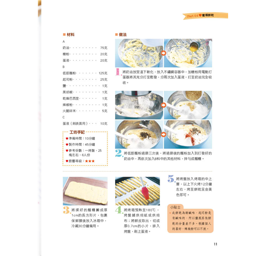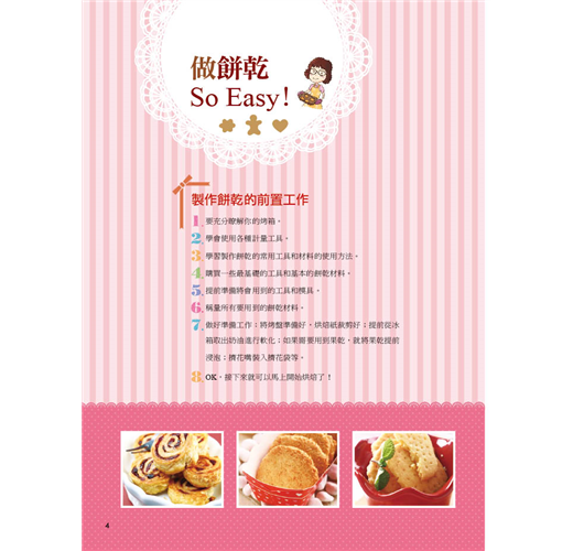本書中的食譜配方,都是作者經過反覆嘗試與改良,材料的分量也特別適合一般人在家操作,製作的步驟也在合理的範圍內做了些簡化,相信這幾點能讓讀者有個不錯的開始!