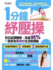 我是一名31歲的女性,平常工作時間長又經常加班趕企劃,每天下班就全身痠痛,只能靠每週三次去按摩spa,解決身體的疲勞痠痛,但是隔天工作還是很快又會痠痛起來。因為平時工作忙碌的關係,沒有太多時間可以運動,在朋友推薦下我知道這本一分鐘紓壓操,每天運動操作,神奇的事,才短短一週時間,身體馬上有感覺,現在我每週只需要去一次按摩spa,就能紓解我一週的身心疲勞及肩頸痠痛,真是太令我感到訝異了!原來真的只要那麼簡單,持續操作下去,我想很快就不需...