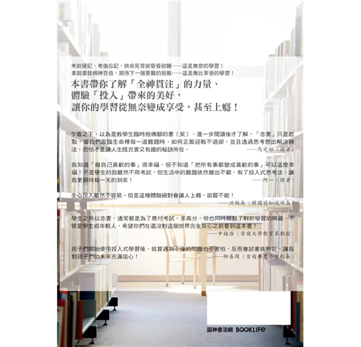 學生之所以念書,通常都是為了應付考試、求高分,但也同時扼殺了對於學習的興趣。只要掌握「全心投入」的秘訣,不但能提升成績、考上理想學校、擁有解決問題的能力、面對未來的勇氣,還能充滿自信,愛上自己所做的每一件事!本書將帶你了解「全神貫注」的力量、體驗「投入」帶來的美好, 讓你的學習,從無奈變成享受,甚至上癮!