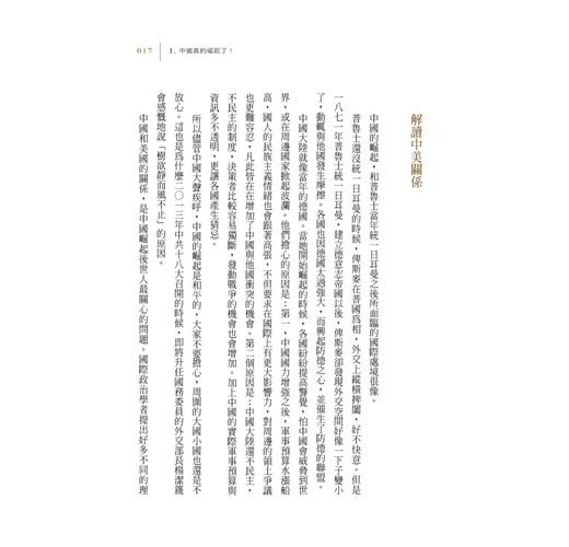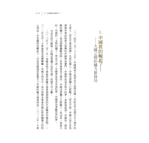 現在,就請翻開第一部分,讓我們從中國的崛起開始談吧!