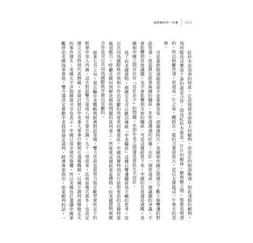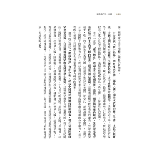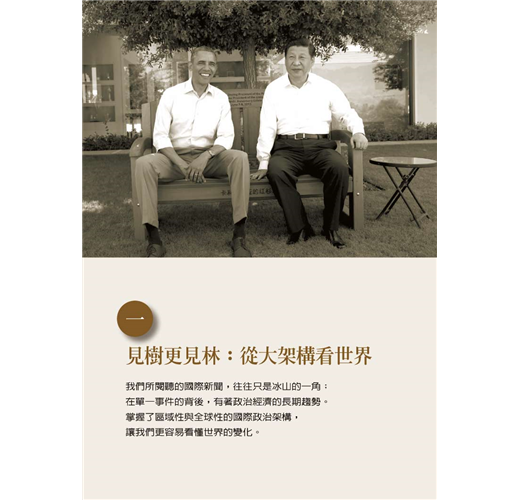 可是要加強國際觀,我們應該從哪裡開始呢?學外文很重要,對國際事務、國際文化有相當的敏感度與一定的興趣也很重要,但是更重要的是,要有一個分析國際情勢的架構。 本書的第一部分,就是介紹當前國際政治幾個重要的權力板塊,以及大國與小國的互動。在過去冷戰時期,要看懂國際關係比較簡單,因為只要把「美蘇爭霸」的架構往國際事件上一套,大概都可以看出一個端倪。冷戰結束之後,國際關係又恢復往昔的生機與複雜。舊的衝突(如巴爾幹半島的民族衝突)又冒了出來,而新的強權,如中國,也逐漸浮現。在這同時,美俄之間的角力也不因冷戰結束而休兵。所以在第一部分,我們就從大架構,把這些看似複雜的權力互動,試著理出一個頭緒。