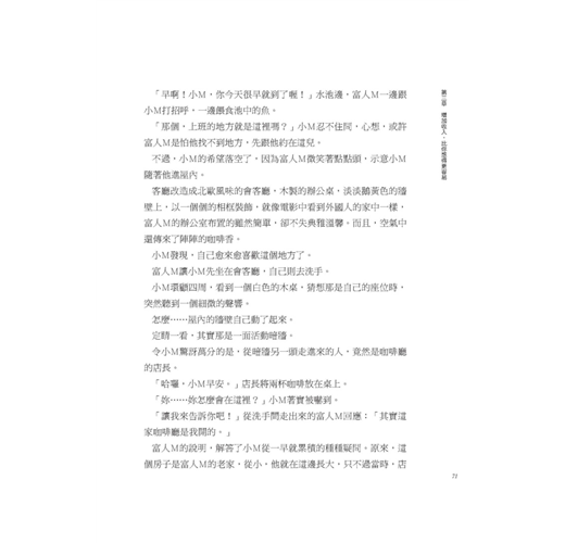 「讓我來告訴你吧」從洗手間走出來的富人M回應:「其實這家咖啡廳是我開的。」