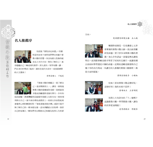 現輔院長應大家的要求,完成了這本大作,相信大家閱讀了後,會更了解「原來紫微斗數這麼好用」,有了這本書,好似我們生活中又多了一位軍師,隨時協助我們,使生活、職場更充實、更圓滿。尤其對於要參加大學考試選擇科系的同學們,相信會有很大的幫助及參考價值。