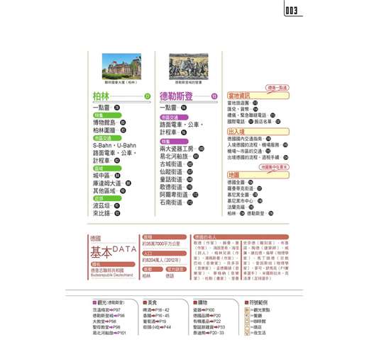 (3)精選旅遊國度觀光景點‧餐飲‧購物去處,讀者可對照內頁實用分區地圖快速掌握個人所需