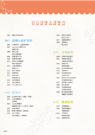 在這裡我們將飲品分成9大類,分別是碳酸&蘇打飲料、鮮果汁、冷凍飲料、健康飲料、和風飲料、創意咖啡、創意茶飲、巧克力&可可飲料和雞尾酒飲料。