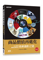 本書將重點放在處理每一件不同商品上,所需要留意的重要事項:擺設的方式、採光技法的探討、拍攝上表現方式的選擇等。涵蓋的主題包括:素背景拍攝、去背商品拍攝、商品情境拍攝等等。較為複雜的佈光,作者更不厭其煩地採用了打一盞燈,就拍下一張的方式,讓讀者清楚看到,每一盞在該案例的用意為何。不論您只是想要了解什麼是「商品攝影」?或者是想要精進商品攝影技巧的專業攝影師,都可以從本書中獲得啟發。