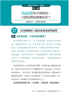 除了破除舊迷思,本書根據最先進的醫學研究,提供最正確的健康新知。包括:為什麼一天吃三顆蛋可以降低膽固醇?飯後愛睏、常餓得發慌,為什麼可能是糖尿病潛伏期?糖尿病為什麼光測血糖不夠,還要測「糖化血色素」與「胰島素」?鈣片類型琳瑯滿目,哪一種吸收率比較高?尿酸到底該驗血還是驗尿?哪些人容易有脂肪肝?……讀通這一本,就等於擁有了最完整的保健手冊!