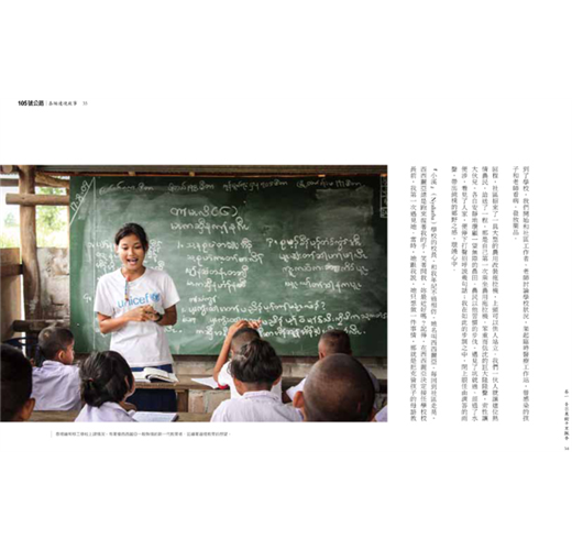 書頁裡用心記錄著,守護著孩童們的年輕校長西西麗亞、髒亂垃圾場旁卻有著最美麗名字的藍天小學、領著她跨越邊境進入戰區的微笑先生、曾是四處躲藏非法偷渡客的夥伴喬治、為了家人接受美國難民庇護情同姊妹的波芙什︙,陪伴她體悟了真摯可貴的生命意涵。