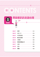 本書分為三個章節。第一個章節以中英文對照的方式介紹了台灣各大景點,第二個章節列出了許多出國旅遊實用的短句與對話,而第三個章節則是囊括了這幾年外語導遊領隊考試的題目與解析。