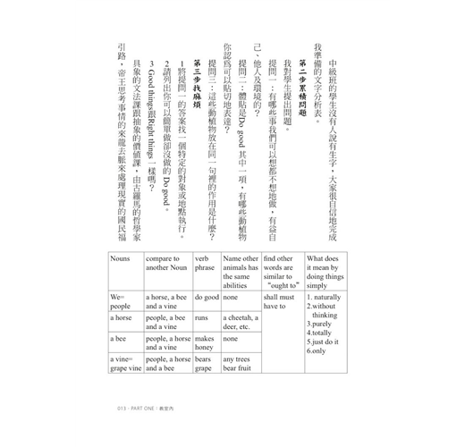 學習的人產生沮喪感是會扼殺夢想的,但學習英文不是一件崇高有壓力的事情。於是我試著找一些學習者過去的經驗所知道的,可以讓他們連結到現在,這相當於英文文法中的概念,我組織學習者在過去、現在、未來以及進行式的經驗連結,我不是教文法,而是用文法概念來了解學習者。
