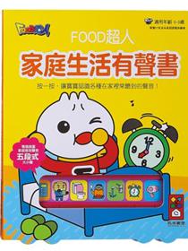 以家庭中常聽到的音效,搭配可愛的FOOD超人內頁插圖,刺激孩子的視覺與聽覺,陪孩子一同學認知。