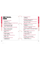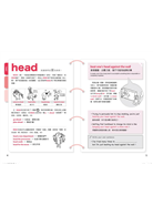 從第一章的「頭」直到最後一章的「肉、身體、靈魂」共二十四章。每章一開始,會先概括介紹該章的主題部位,之後再一頁解說一個慣用語。解說的內容,除了以中文介紹慣用語的典故或相關、相反用語,也附上英文釋義,以加深讀者對該慣用語的理解、同時補充相關單字。且在頁尾並且加了一個小設計——以各種常用的句型,請讀者用該頁的慣用語練習造句。最後,在二十四章的旅程告一段落之後的附錄,裡頭有各式各樣與身體部位有關的諺語或名言佳句,算是告別這趟旅程之前心靈的洗禮。