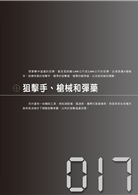 全世界著名的狙擊槍都有詳盡介紹,包括子彈規格、彈匣容量、長度、槍管長與總重,此外還展示了多張各國精英狙擊小組的精彩照片。