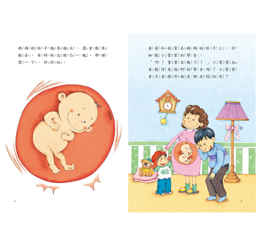 4.您的孩子是否對自己在母親胎中的情形充滿好奇與疑惑?本書可以讓孩子了解胎兒在媽媽肚子裡都做些什麼活動?提供健康的生理教育。