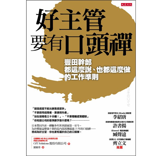 口頭禪指的是人們常常掛在嘴邊的話,有些是無意識的口語反應,有些則會反映出內在的思維,是由日積月累的成敗經驗,過濾而成的「慣用語」。豐田老將們的口頭禪,每一句都很精鍊,最長不超過二十個字,但是背後的意涵深遠,不但傳承了豐田這家世界級公司的企業文化,更傳遞了這個組織經過數十年管理實務驗證的Know-how。