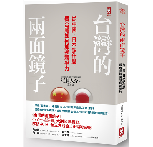 母親在台灣出生,台灣是「母親的故鄉」,外曾祖父日治時期任職台北火車站站長,妻子是中國人,在日本、中國有多年工作及採訪經驗,曾多次到台灣採訪……近藤大介先生身兼企業管理者、學者、記者、觀察家,就他在日本、中國工作及生活親身體驗,從細微處觀察兩國人民作事方法及態度等「外在」的不同,診斷出「日本病」、「中國病」,歸納出「內在」因素的大哉問:是國家性缺失,還是國民性痼疾?《台灣的兩面鏡子》值得大家細讀觀照。——胡文輝(《自由時報》總編輯)