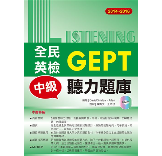 本書另附1片由美籍專業教師錄製而成的聽力MP3,其發音、音速、空秒皆與全真英檢測驗相同,彷彿親臨考試現場般的逼真。