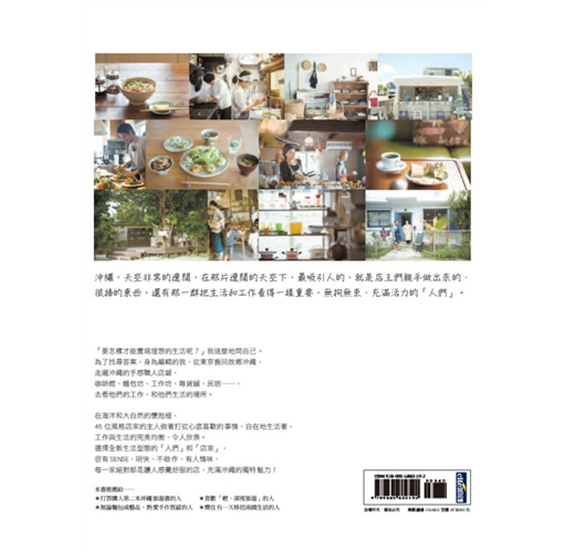 作者說,沖繩,天空非常的遼闊;而在那片遼闊的天空下,最吸引人的,就是店主們親手做出來的、很棒的東西;還有那一群把生活和工作看得一樣重要,無拘無束、充滿活力的「人們」。