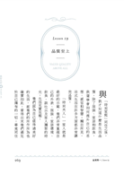 餐具|家具|只留最好的東西|挑選精品,量力而出|禮儀|人前人後始終如一|培養最好的品味|重點複習