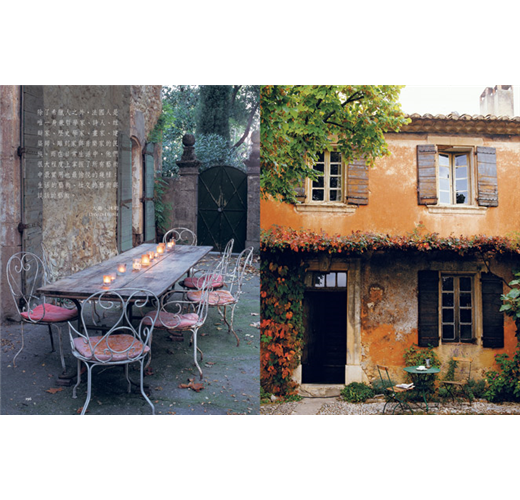 ■十五棟充滿法式風情的古老屋舍,帶領讀者漫遊諾曼地(Normandy)、布列塔尼(Brittany)、黑島(the Ile de Ré)、巴黎(Paris)、普羅旺斯(Provence)以及波爾多(Bordeaux)等區域,一窺屋主對於家的定義、舊屋新裝的巧思。
