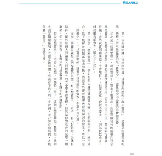 第一步是要先能賺到錢,再好好存錢,這就是所謂的「收支管理」,是蘋果樹管理術的第一要務,所以最重要的是「費要少」,盡量減少不必要的消費和浪費。