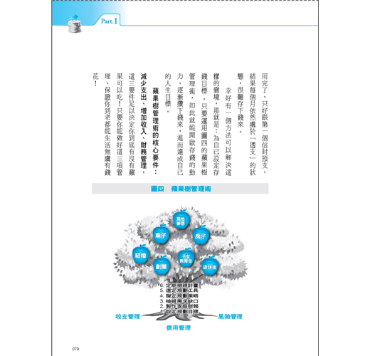 幸好有一個方法可以解決這樣的窘境,那就是:為自己設定存錢目標。只要運用圖四的蘋果樹管理術,如此就能開啟存錢的動力,逐漸攢下錢來,進而達成自己的人生目標。