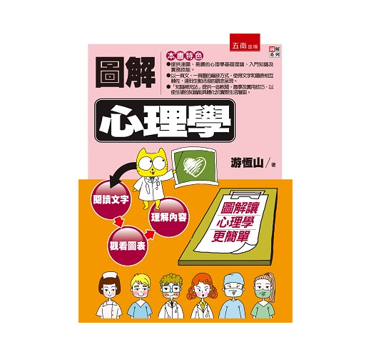 本書試圖以簡明的粗線條,向讀者介紹心理學的基本知識、基本門派,以及現代心理學發展的基本脈絡。在編排上採取圖解的方式,把複雜的概念化約為簡易的關係圖、樹狀圖、流程圖甚至漫畫圖,方便讀者兩邊對照內容,以收專業、易懂而易記之效。