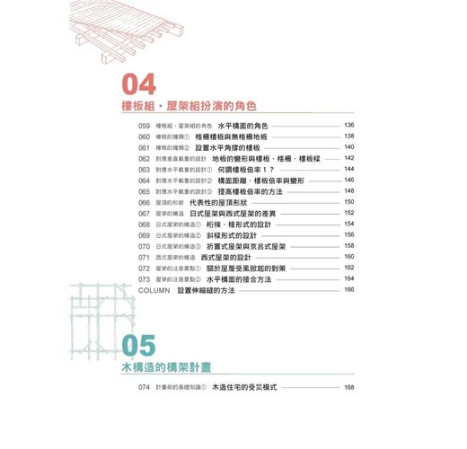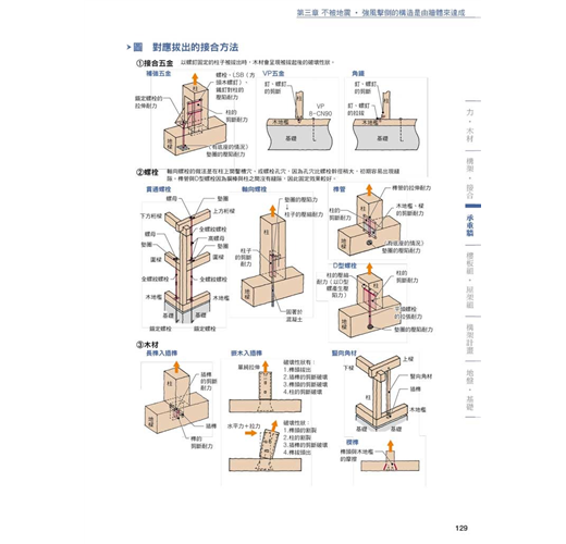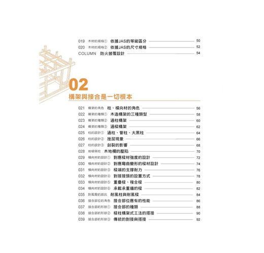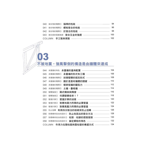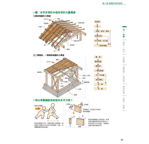 對應章節木材特性、壁體量的配置與計算、力的傳遞方式、結合部位的搭接與接頭工法、耐震與制震